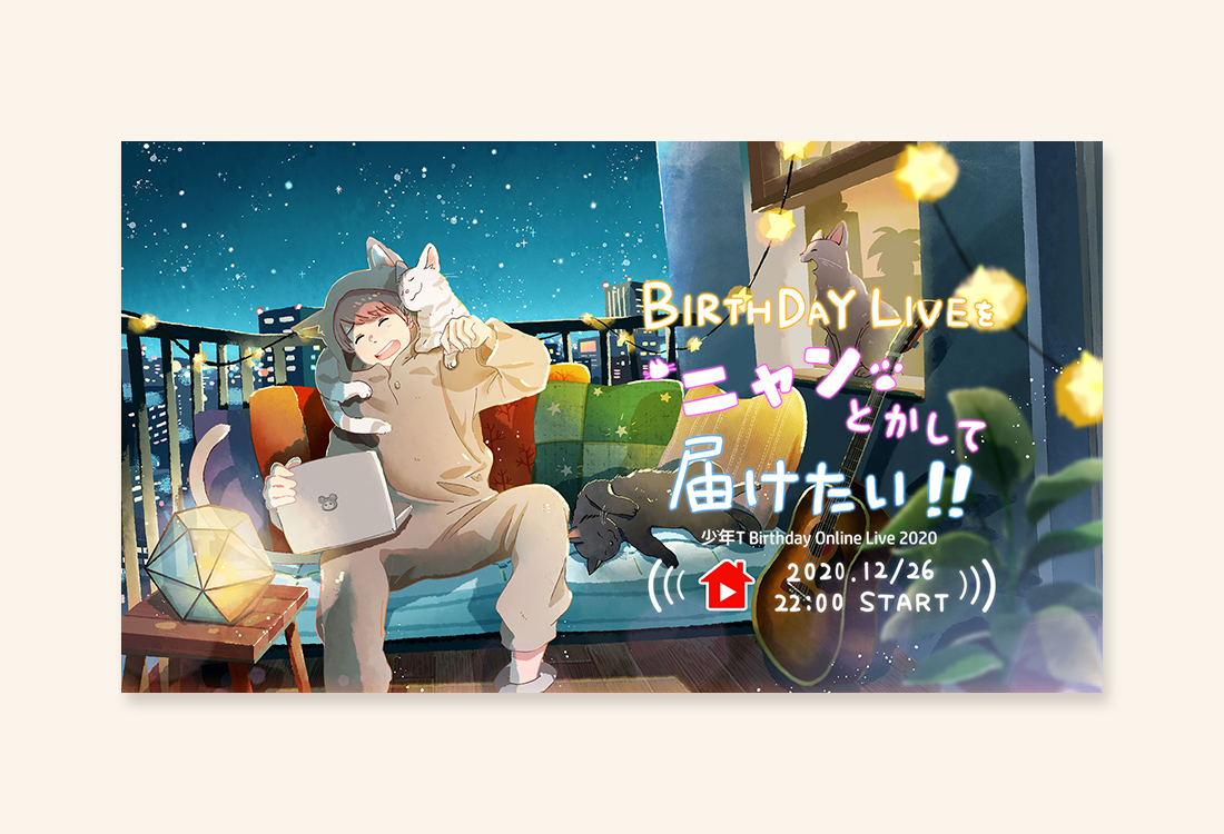 メディア 少年T様『BIRTHDAY ONLINE LIVE 2020』キービジュアル 少年T様『BIRTHDAY ONLINE LIVE 2020』 オンラインライブ用キービジュアルを担当いたしました