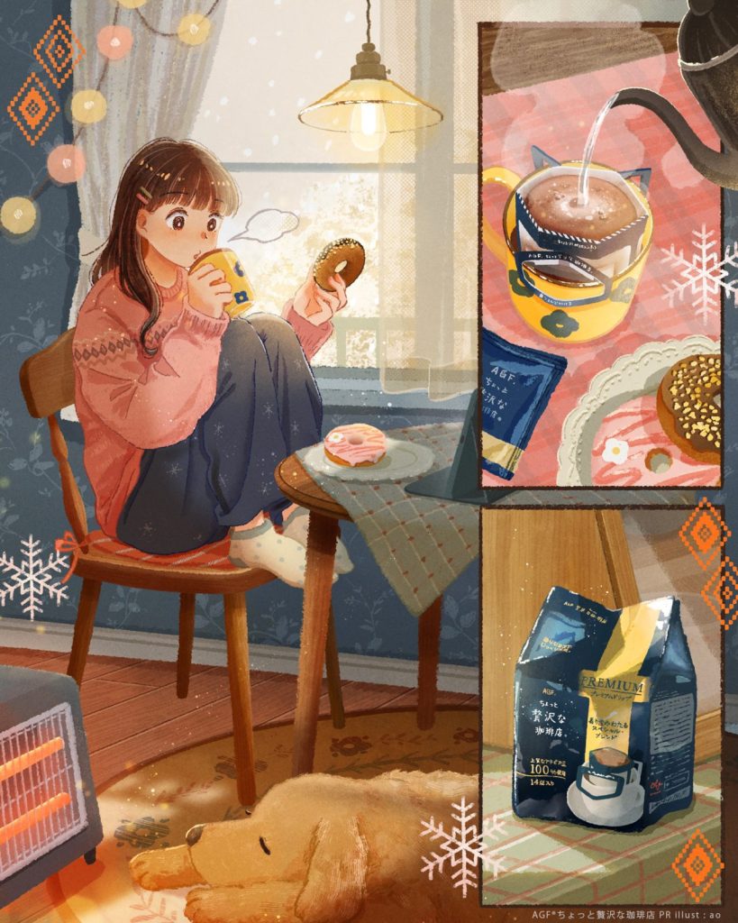 広告 味の素AGF様『ちょっと贅沢な珈琲店』『ブレンディスティックカフェオレ』PRイラスト 味の素AGF 公式Twitterにて、 『ちょっと贅沢な珈琲店』『ブレンディスティックカフェオレ』 PRイラストを担当いたしました(2024) CL:味の素AGF (敬称略)